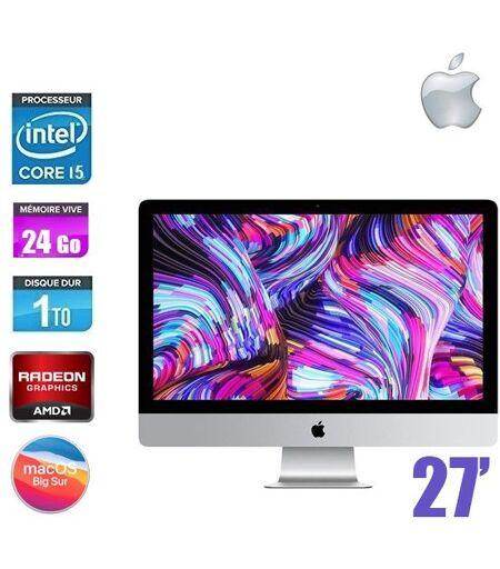 APPLE IMAC 27 INTEL CORE I5 6500 3.2GhzCore i5-3.2 GHz 24 Go 1 To Go AMD RADEON R9 M390 2GO WIFI WEBCAM 27 MAC OS BIG SUR Clavier+souris neuf compatible AZERTY