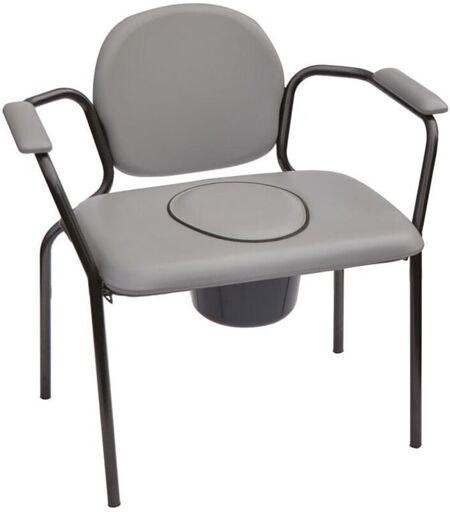 Ce fauteuil est spécialement conçu pour des personnes de forte corpulence à mobilité réduite, avec une assise large de 65 cm et un poids supporté jusquà 160 kg. Equipé dun pot amovible. Dimensions hors-tout : larg. 87 x prof. 53 x haut. 90 cm. Dimensions assise : larg. 65 x prof 45 x haut 52 cm. Poids 9,5 kg. Poids maximum autorisé : 160 kg. ...