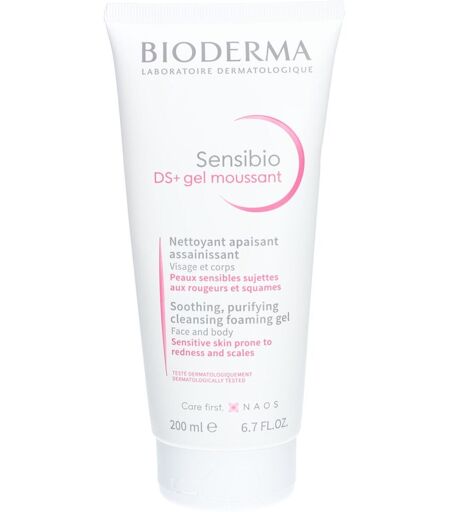 Tous les produits du Laboratoire BIODERMA sont formulés selon le principe d'écobiologie qui est au cœur de la démarche NAOS, pour respecter l'écosystme de votre peau et préserver sa santé durablement.Innovation développée par la recherche BIODERMA spécialisée dans la biologie de la peau, Sensibio DS+ Gel combat la source des rougeurs et des desquamations (peau qui pèle).Ce gel limite la prolifération des levures du genre Malassezia, irritants qui accentuent les peaux sujettes aux rougeurs et à la desquamation.Sensibio DS+ Gel purifie la peau et réduit la formation des squames.Le complexe naturel breveté D.A.F.* augmente la tolérance de la peau.ApplicationMatin et/ou soir.ÉTAPE 1Appliquer Sensibio DS+ Gel sur une peau mouillée.ÉTAPE 2Faire mousser.ÉTAPE 3Rincer abondamment.ÉTAPE 4Sécher délicatement.ÉTAPE 5Puis appliquer Sensibio DS+ Crème.Éviter le contact avec les yeux.IngrédientsAQUA/WATER/EAU, SODIUM LAURETH SULFATE, COCO-BETAINE, SODIUM LAUROYL SARCOSINATE, MANNITOL, XYLITOL, RHAMNOSE, FRUCTOOLIGOSACCHARIDES, LAMINARIA OCHROLEUCA EXTRACT, ZINC GLUCONAT, PEG-90 GLYCERYL ISOSTEARATE, SODIUM CHLORIDE, COCO-GLUCOSIDE, GLYCERYL OLEATE, CAPRYLOYL GLYCINE, DECYLENE GLYCOL, CAPRYLIC/CAPRIC TRIGLYCERIDE, LAURETH-2, AMMONIUM GLYCYRRHIZATE, LYSINE AZELATE, PYRIDOXINE HCL, UNDECYL ALCOHOL, CITRIC ACID, DISODIUM EDTA, SODIUM HYDROXIDE. [BI 422]Les ingrédients listés ici sont ceux contenus dans la dernière formule de ce produit. Un décalage de temps pouvant exister entre sa production et sa diffusion sur le marché, nous vous invitons à consulter la liste des ingrédients figurant sur l’emballage de votre produit. ...