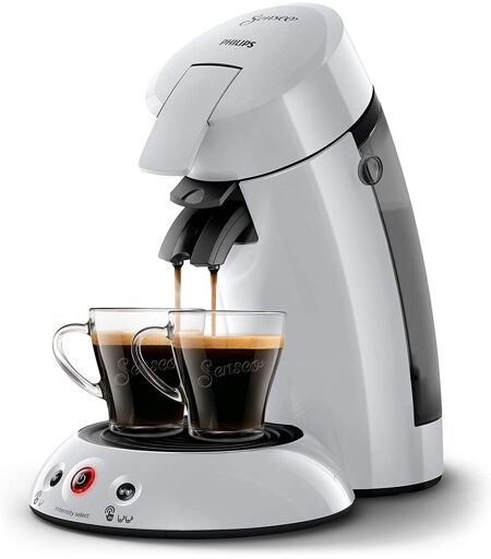 Savourez vos pauses café grâce à la machine à café Senseo Original ! Ce système exclusif qui associe la machine à café Senseo aux dosettes Senseo vous offrira en toute simplicité un café intense et raffiné avec une délicieuse couche de mousse.Une ou deux tasses simultanément:Préparez une ou deux délicieuses tasses de café Senseo en moins d'une minute.Technologie Booster d'arômes:Grâce à une répartition optimale de l¿eau sur la dosette, dégustez un café encore plus savoureux et plus parfumé.Sélecteur d'intensité:Sélectionnez un café court et intense en deux clics ou un café long et doux en un clic.La technologie Senseo Crema Plus:Une mousse encore plus fine et plus onctueuse qu¿auparavant avec la nouvelle technologie Crema Plus. ...