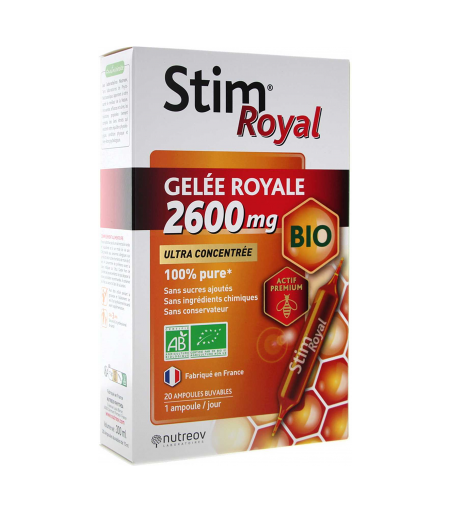 Parapharmacie > Compléments alimentaires > Vitalité - Défenses immunitaires Stim Royal Gelée Royale Bio 2600 mg Ampoules x 20 - Vitalité - Défenses immunitaires - Pharmacie en ligne LaSante.net