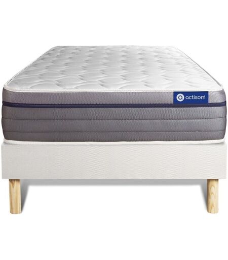 Actisom Ensemble Matelas Ressorts Ensaches+Memoire De Forme Actiflex Zen 90x190 Maxi Epaisseur 7zones De Confort + Sommier Kit Blanc