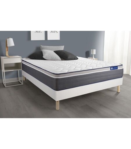 Actisom Ensemble matelas ACTIFLEX PLUS 160x200 Ressorts ensaches+Memoire de forme Maxi epaisseur 7zones confort + sommier KIT blanc