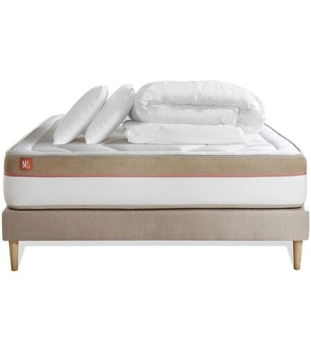 Pack Prêt A Dormir Matelas Le Cosy 160x200cm Memoire De Forme - Ep. 30cm + Sommier Kit Beige