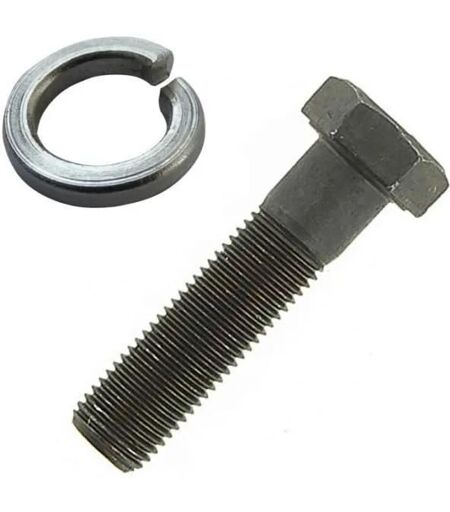 Vis de lame pour tondeuse avec rondelle frein Ø10mm ; Filetage 9.5mm 3/8" 24UNF ; Longueur sous tête : 45mm ; Acier bruni ; ...