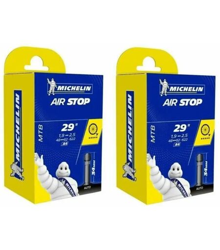Lot de 2 chambres à air Michelin pour vélo 29 x 1,90-2,50" (48/62-622). Fabriquées en butyl, elles sont idéales pour les VTT. Équipées de valves Schrader de 35MM, elles garantissent une excellente performance et durabilité. ...