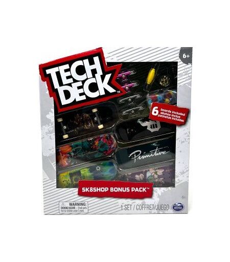 Spin Master Coffret Tech Deck Primitive : 6 Mini Skates + Accessoires - Mini Skate A Doigt 96 Mm - Pack Skateshop Finger + 1 Carte