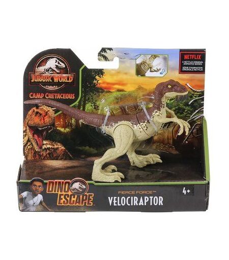 Dinosaure Velociraptor - Jurassic World - Dino Attaque Féroce 19 Cm - Animaux Préhistorique Brun - Nouveauté