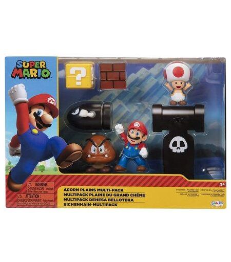 Coffret Super Mario : 4 Figurines (Mario Toad Bullet Bill Goomba) + 1 Accessoire - Figurine Collection - Plaine Grand Chêne - Enfant