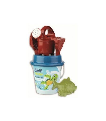 Seau De Plage Save The Sea Animaux Marins 17 Cm + Moule, Pelle, Rateau, Tamis, Arrosoir - Plastique Recycle - Jouets De Sable