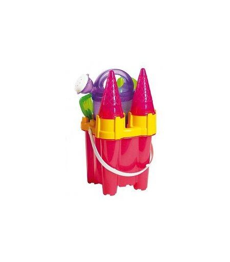 Set Chateau Fort A Paillettes, Rose 7 Pieces Fille - Seau, Tamis, Arrosoir, Pelle, Rateau, Moules - Jouets De Plage, Bac A Sable