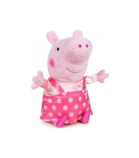Peluche Peppa Pig Salopette Rose A Pois 31 Cm - Peluche Licence - Cochon - Doudou Enfant