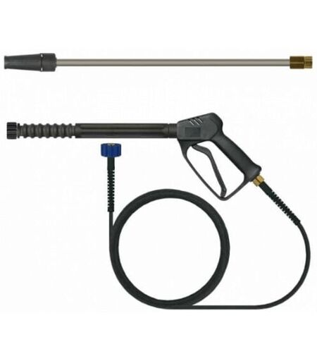 Adaptable KEW Cet ensemble d'accessoires s'adapte sur toute la gamme Kew - Alto - Nilfisk grand public. Il est composé: - D'un flexible de 8 métres - D'un pistolet avec manchon - D'une demi-lance avec buse à jet variable Caractéristiques du flexible Domaine d'application : nettoyage semi-professionnel haute pression et nettoyage de canalisation Gaine interne Polyéthylène Gaine synthétique imputrescible en polyester Gaine externe polyvinylchloride Oléo résistant sous réserves Couleur : noir Diamètre nominal : 6 mm Diamètre ext : 11.6 mm Pression : 160 Bar Pression de rupture : >640 bar Température maximum de l'eau : 65°C Caractéristique du pistolet Pistolet professionnel avec manchon 340 mm, max. 210 bar / 25 l/min /150°C. Entrée/ sortie M22 F. Equipé d'un flexible 6 - 160 avec 1 tresse synthétique, max 160/ bar / 20°C ...