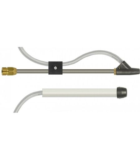 Ce kit de sablage adaptable KRANZLE et autre marque avec fixation en M22M, se branche sur votre nettoyeur haute pression et permet d'ajouter du sable à l'eau sous pression. Ce kit comprend: Une lance de sablage de 300 mm Une buse de sablage adapté Un tuyau d'aspiration de 3 mètres. Kit de sablage haute pression Une lance de sablage haute pression se branche sur la poignée de votre nettoyeur haute pression. La buse de sablage permet l'ajout de sable à l'eau sous pression. Cette opération est très utilisée pour décaper des surfaces peintes (volet, portail, crépi, etc...) ou par les professionnels pour du ravalement ou le nettoyage de graffitis. Le tube d'aspiration doit arriver par le haut de la buse pour éviter un retour d'eau dans le sable. Le tube d'aspiration fait 300 mm et le tuyau est de 3 mètres. La ganulométrie du sable doit être comprise entre 0,2 à 0,8 mm Fixation de la lance de sablage Coupleur M22 mâle en laiton Ce coupleur permet de se brancher sur toutes les machines avec ...