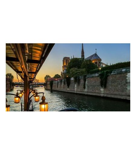 Découvrez Paris dans un cadre magique et insolite lors de cette croisière gastronomique sur la Seine. C'est au pied du Louvre et du Pont des Arts que votre voyage débute. Depuis 30 ans cette péniche au charme fou vogue le long de la Seine et propose à ses convives de découvrir celle que l'on surnomme Ville Lumière à l'occasion d'un dîner gastronomique dans le cadre intemporel de cette péniche 'vintage'. Il y a bientôt 20 ans, le propriétaire de ce bateau découvre ce diamant brut datant de 1939. Sous le charme il le rénove et le transforme en un bijou luxueux et confortable. Le navire est entièrement fabriqué en bois exotique et est orné de lanternes d'époque aux couleurs chaudes. Il y règne une atmosphère chaleureuse qui vous fait immédiatement voyager dans le temps.. Bien plus qu'un simple repas sur l'eau, c'est une véritable expérience culturelle qui relèverait presque de la magie. Que vous soyez de passage dans la capitale ou pur parisien redécouvrez la Ville Lumière sous son plus bel angle et laissez la renaître sous vos yeux à travers un itinéraire d'exception, presque irréel. Vous lèverez l'ancre depuis l'Institut de France du Pont des arts et rapidement, les monuments emblématiques de la capitale se dresseront devant vous, Bibliothèque Nationale de France, Hôtel de Ville, celle que les parisiens surnomment la vieille dame ou plus communément appelée Cathédrale Notre Dame et son architecture gothique, Le Louvre, suivi du Grand Palais et du Palais de Chaillot pour finalement marquer un arrêt au pied de la si précieuse Dame de Fer, la Tour Eiffel... Et le spectacle ne s'arrête pas la puisque que vous rejoindrez votre quai de départ en revenant par une autre branche de la Seine de laquelle, une fois encore, vous pourrez observer les plus beaux bâtiments de la capitale : Statut de la liberté, Les Invalides la maison de la Monarchie et de l'Empire, Assemblée Nationale et pour finir le musée d'Orsay. Toute l'équipe du bateau veillera au bon déroulement de la croisière et sera aux petits soins pour que votre expérience soit la plus agréable et inoubliable possible. Le bateau est composé de 3 espaces : - La terrasse - La véranda - Le salon lounge Libre à vous de choisir l'espace où vous vous sentirez le plus à l'aise pour vivre votre navigation. A noter que toutes les tables sont tournées vers les fenêtres offrant une vue imprenable sur l'eau et les monuments. Il en est de même pour les menus, 3 choix d'exception pour une virée gastronomique inoubliable au cœur de la Ville Lumière : Le Menu Paris Lunch, uniquement le midi, composé d'un cocktail de bienvenu (avec ou sans alcool), d'une entrée et d'un plat. Dessert et boissons en supplément à régler directement sur place. Le Menu Calife, composé d'un cocktail de bienvenu (avec ou sans alcool), d'une entrée, d'un plat et d'un dessert. Boissons en supplément à régler directement sur place. Pour ces deux menus vous aurez le choix entre 3 entrées, 3 plats et 3 desserts. Et pour finir, le fabuleux Menu... ...
