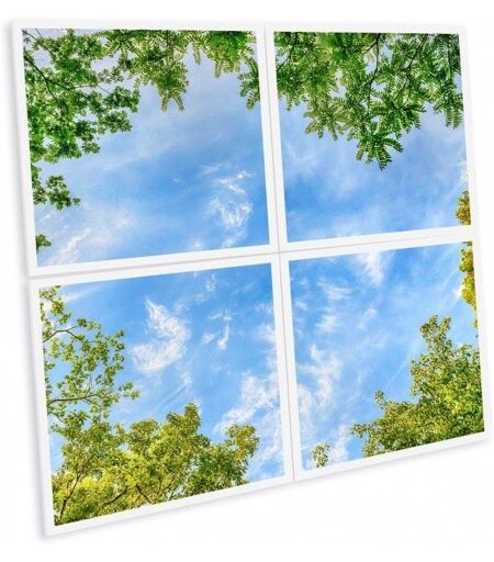Ce pack de 4 dalles LED imprimées en France , est disponible également en pack de 9 ou à l'unité. Vous êtes à la recherche d'un système lumineux et moderne pour les plafonds de votre entreprise ? La dalle LED imprimée est l'idéale pour créer une ouverture dans les locaux sombres qui peuvent être anxiogène pour vos employés ou visiteurs. Bien-être des patients, confort des clients ou productivité des salariés : la dalle LED apporte l'illusion de la lumière extérieure tout en procurant un sentiment apaisant et relaxant. Nos fenêtres virtuelles fonctionnent à l'aide d'un transformateur. Vous pouvez donc les faire fonctionner avec un interrupteur ON-OFF mais aussi faire varier leur intensité lumineuse grâce à une alimentation dimmable (Triac, DALI ou 1-10V). ...