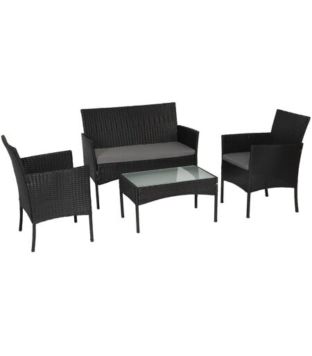 Happy Garden Salon De Jardin Cordoue En Résine Tressée Noire 4 Places - Coussins Gris