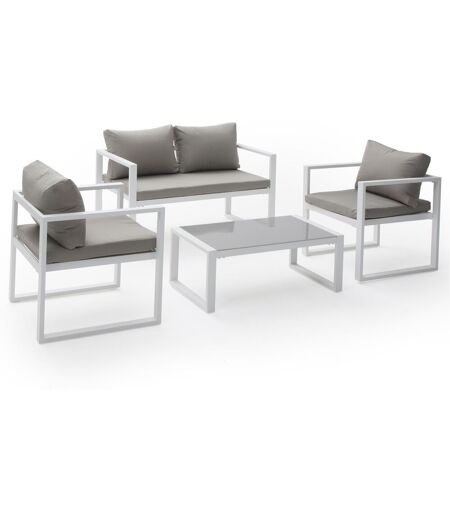 Happy Garden Salon De Jardin Ibiza En Tissu Gris 4 Places - Aluminium Blanc