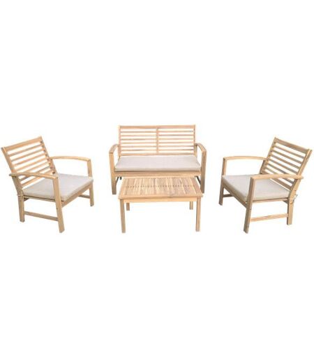 Happy Garden Salon De Jardin En Acacia 4 Places Goa - Coussins Sable