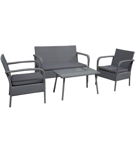 Happy Garden Salon De Jardin Lipari En Résine Tressée Grise 4 Places - Coussins Gris