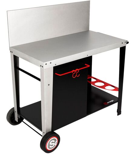 Description : Créez une petite cuisine dans votre jardin afin d'être proche de votre famille et de vos amis installés à table tout en leur préparant de délicieux repas en été. Cette desserte à plancha SALVIA de la marque Somagic charme par son côté pratique et fonctionnel. Ce meuble d'appoint permet de poser votre plancha en toute sécurité et possède quelques rangements pour vous faciliter la vie. Elle comporte notamment une poignée, une plateforme de rangement ainsi qu'un panier porte-bouteilles, avec 3 emplacements disponibles. Suspendez vos ustensiles de cuisine sur les 2 crochets porte-accessoires prévus à cet effet. Le plan de travail de cette desserte pour plancha est protégé par une crédence qui évite les éclaboussures. C'est l'accessoire plancha indispensable de la saison estivale ! Détails : Dimensions : - Desserte : L 103 x l 57,5 x H 104,5cm - Surface de travail : L 90 x l 47cm - Hauteur entre les plateaux : H 58cm - Crédence : L 90 x H 28cm Matières : - Structure : métal - Plateau : métal Couleurs : - Structure : noir - Plateau : gris Options : - Crédence - Plateforme de rangement - Panier porte-bouteilles (3 emplacements) - 2 crochets porte-accessoires - Poignée - 2 roues Informations complémentaires : - Poids maximum supportés : 40kg (surface de travail) / 15kg (plateforme de rangement) - À monter (notice incluse) - Garantie : 2 ans Livraison : La desserte pour plancha SALVIA contient : 1 desserte Livraison effectuée en pas de porte, en bas d'immeuble - Livraison en 1 colis Colis 1 : L 94,3 × l 51,8 × H 8,8cm - poids brut : 18,4kg/poids net : 17,1kg ...