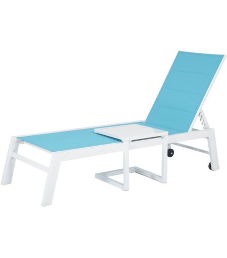 Happy Garden Set Bain De Soleil Et Table D'appoint Barbados En Textilène Bleu - Aluminium Blanc
