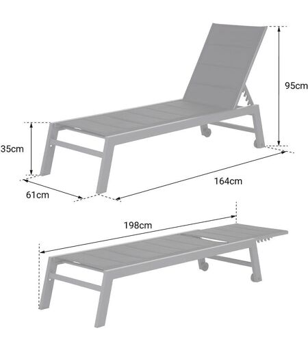 Description : Avec un design épuré et une alliance de couleurs chic et moderne, votre bain de soleil BARBADOS s'intègrera parfaitement à votre extérieur. Le dossier inclinable de votre transat s'adapte à toutes vos envies : sieste, lecture... de plus, la souplesse du textilène vous assurera un très grand confort. Détails : Dimensions : - Bain de soleil : L 164 à 198 × l 61 × H 35 à 95cm - Hauteur d'assise : 35cm - Largeur pied : L 6 x l 3cm Matières : - Revêtement : textilène - Structure : aluminium - Roulettes : caoutchouc Couleurs : - Revêtement : vert d'eau - Structure : anthracite Informations complémentaires : - Poids maximum supportés : 120kg - Dossier réglable sur 5 niveaux - 2 roulettes - Structure : résiste aux U.V - À monter (notice incluse) - Garantie : 2 ans Livraison : Le bain de soleil BARBADOS contient : 1 bain de soleil Livraison effectuée en pas de porte, en bas d'immeuble - Livraison en 1 colis Colis 1 : L 166 × l 9 × H 63cm - poids brut : 10,2kg/poids net : 7kg ...