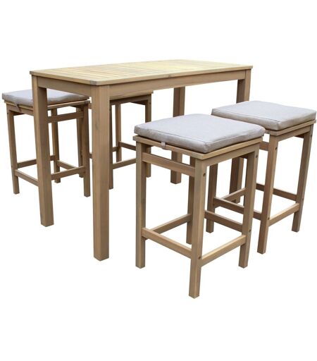 Description : Accueillez jusqu'à 4 personnes sur votre terrasse pour partager un bon repas ou un moment de convivialité entre amis ou en famille. Ce mobilier d'extérieur se compose d'un mange debout et de 4 tabourets, dans un style naturel et contemporain. Chaque siège comporte un coussin d'assise moelleux pour pouvoir s'asseoir de manière plus confortable. Une fois que vous quittez la table, vous pouvez ranger les tabourets en dessous du mange debout pour garder une terrasse bien organisée. Cet ensemble a été confectionné en bois d'acacia, offrant durabilité, robustesse ainsi qu'une belle résistance aux intempéries. Vous pourrez ainsi garder ces meubles d'extérieur de nombreuses années sans qu'ils ne se dégradent. Détails : Dimensions : - Table : L 121 × l 61 × H 90cm - Épaisseur du plateau : 8cm - Hauteur sous plateau : 82cm - Épaisseur pieds table : 6cm - Tabourets : P 43 × l 40 × H 66cm - Hauteur d'assise : 71cm - Coussins d'assise : L 43 × l 40 × Ép. 5cm Matières : - Structure : acacia - Coussins : Revêtement : polyester 230g/m² Rembourrage : densité : mousse 17D Couleurs : - Structure : bois - Coussins : sable Informations complémentaires : - Utilisation : extérieure - Nombre de places : 4 - Poids maximum supportés : 75kg (table) / 120kg (tabouret) - Coussins : déhoussables avec zip et lavage à la main avec un chiffon doux et de l'eau - À monter (notice incluse) - Garantie : 2 ans Livraison : Le salon de jardin ARUBA contient : 1 table et 4 tabourets Colis 1 : L 125 × l 64,5 × H 11cm - poids brut : 17,06kg / poids net : 15,06kg Colis 1 : L 89 × l 44 × H 42cm - poids brut : 23kg / poids net : 21kg ...