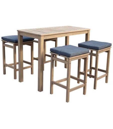 Description : Accueillez jusqu'à 4 personnes sur votre terrasse pour partager un bon repas ou un moment de convivialité entre amis ou en famille. Ce mobilier d'extérieur se compose d'un mange debout et de 4 tabourets, dans un style naturel et contemporain. Chaque siège comporte un coussin d'assise moelleux pour pouvoir s'asseoir de manière plus confortable. Une fois que vous quittez la table, vous pouvez ranger les tabourets en dessous du mange debout pour garder une terrasse bien organisée. Cet ensemble a été confectionné en bois d'acacia, offrant durabilité, robustesse ainsi qu'une belle résistance aux intempéries. Vous pourrez ainsi garder ces meubles d'extérieur de nombreuses années sans qu'ils ne se dégradent. Détails : Dimensions : - Table : L 121 × l 61 × H 90cm - Épaisseur du plateau : 8cm - Hauteur sous plateau : 82cm - Épaisseur pieds table : 6cm - Tabourets : P 43 × l 40 × H 66cm - Hauteur d'assise : 71cm - Coussins d'assise : L 43 × l 40 × Ép. 5cm Matières : - Structure : acacia - Coussins : Revêtement : polyester 230g/m² Rembourrage : densité : mousse 17D Couleurs : - Structure : bois - Coussins : gris Informations complémentaires : - Utilisation : extérieure - Nombre de places : 4 - Poids maximum supportés : 75kg (table) / 120kg (tabouret) - Coussins : déhoussables avec zip et lavage à la main avec un chiffon doux et de l'eau - À monter (notice incluse) - Garantie : 2 ans Livraison : Le salon de jardin ARUBA contient : 1 table et 4 tabourets Colis 1 : L 125 × l 64,5 × H 11cm - poids brut : 17,06kg / poids net : 15,06kg Colis 1 : L 89 × l 44 × H 42cm - poids brut : 23kg / poids net : 21kg ...