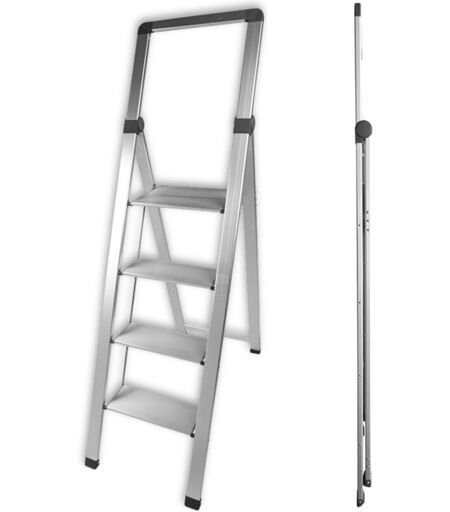 FACILITYS Escabeau Marchepied Solide Pliable en Aluminium - 4 Marches - Gain de place - Léger et Antidérapant