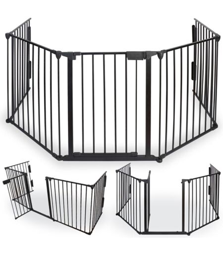 DESCRIPTION GÉNÉRALE Sécurisez votre intérieur avec cette barrière de sécurité pour enfants, bébés et animaux, idéale pour protéger des zones à risque comme les escaliers, cheminées, fours et fenêtres. Cette barrière est conçue pour limiter l'accès à des endroits dangereux tout en offrant une grande flexibilité d'installation. SPÉCIFICATIONS TECHNIQUES Hauteur : 74,5 cm Longueur maximale : 305 cm Longueur par panneau : 60 cm Diamètre des barreaux : 1 cm Espacement entre chaque barreau : 6 cm Poids : 15,86 kg Couleur : Noir Matière : Métal Peinture résistante à la chaleur Utilisation : Intérieur (non recommandé pour un usage extérieur) COMPATIBILITÉ ET ACCESSOIRES Barrière déjà montée : Prête à l'emploi, il suffit de la déplier et de la fixer. Accessoires de fixation : Pattes de fixation murale, supports muraux, vis, écrous et chevilles (tournevis cruciforme non fourni). ...