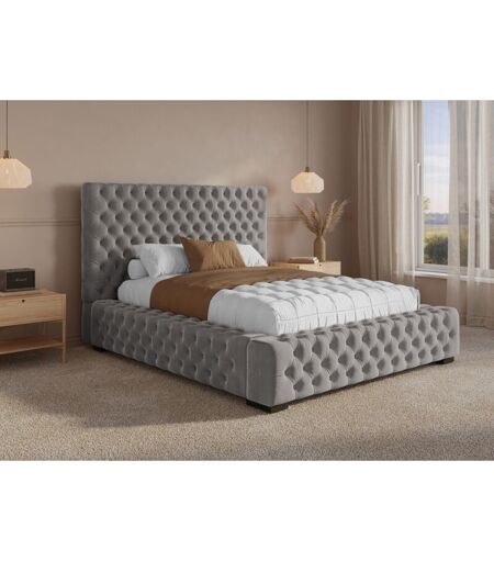 Deco In Paris - Lit coffre capitonné en velours gris idaline 140 x 190 cm