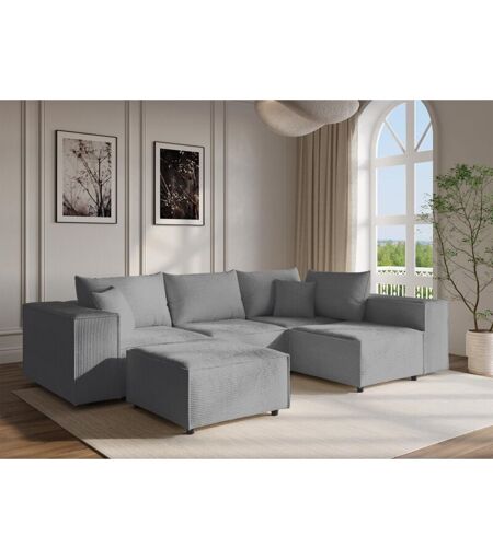 Deco In Paris - Canapé d'angle modulable avec 1 pouf en velours côtelé épais gris