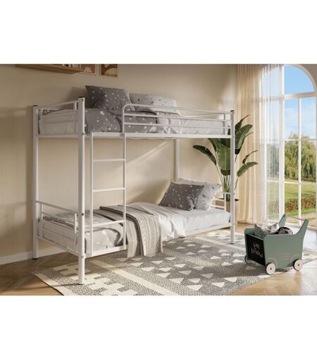 Deco In Paris - Lit superposé twins en métal blanc 90 x 190 cm + sommiers