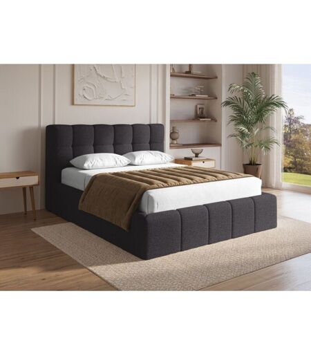 Deco In Paris - Lit coffre en tissu bouclette gris 140x190 cm milie