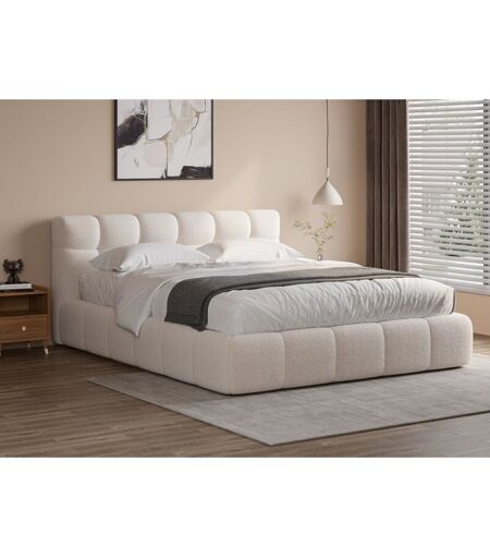 DECO IN PARIS Lit double en tissu bouclette écru 140x190 cm GEORGINA