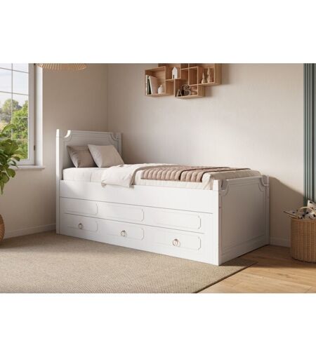 Deco In Paris - Lit gigogne avec tiroirs en bois blanc pauline 90 x 190 cm