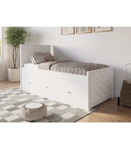 DECO IN PARIS Lit gigogne avec tiroirs en bois blanc ENORA 90 x 190 cm