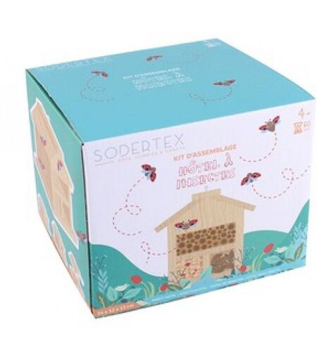 Ce kit est con?u pour les enfants ? partir de 4 ans! Il est r?alisable en 60 minutes Les enfants auront plaisir d'assembler eux-m?mes une h?tel ? insectes! Une fois assembl?, ils pourront le d?corer comme ils le souhaitent avec de la peinture et ainsi laisser libre court ? leur imagination! L'h?tel pourra ?tre install? au milieu du jardin, dans un arbre ou dans le recoin d'une maison En plus, d'?tre une activit? manuelle amusante, la r?alisation d'un h?tel ? insectes permet de pr?server la plan?te, son ?cosyst?me et sa biodiversit?! 13X17X27CM ...