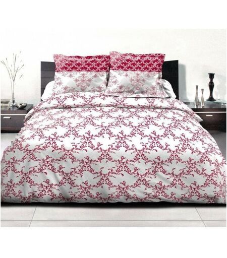 Home Linge Passion - Parure de couette 220x240 cm frise : Housse de couette + 2 taies d'oreiller - 100% Coton 57 Fils - Bordeaux