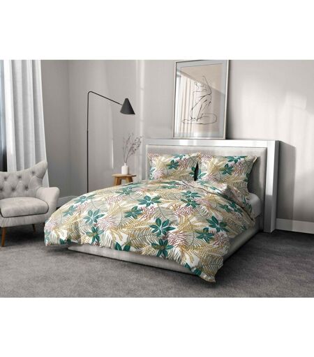 Home Linge Passion - Parure de couette 3 pieces coton 57 fils vert 240 x 260 cm - amazonie fougere
