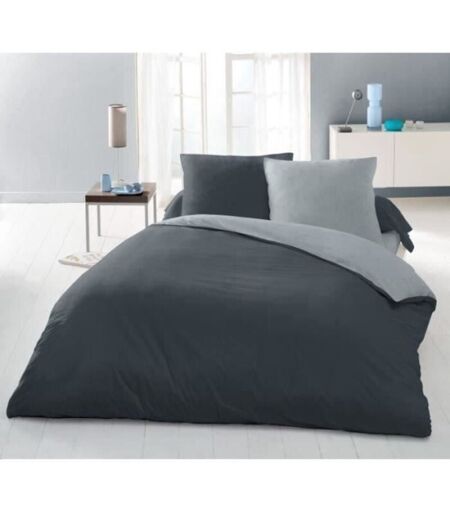 Lovely Home - Parure housse de couette 2 personnes - 220x240 cm - 100% Coton - Bicolore Gris clair et foncé
