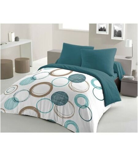 Parure de couette microfibre Audace - 1 housse de couette 240 x 260 cm + 2 taies d'oreiller 63 x 63 cm - Bleu Canard ...
