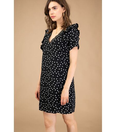 3Suisses : Robe manches courte, détail volants à l'encolure, col V devant et dos , détail dentelle. 100%POLYESTER Marque: Cherry Paris Genre: Femme Age: Adulte ...