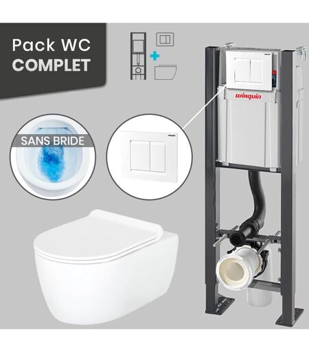 THALASSOR Pack WC Bâti universel Wirquin Pro + Cuvette SANEO sans bride + Plaque blanche