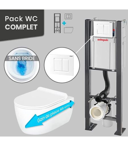 THALASSOR Pack WC Bâti universel Wirquin Pro + Cuvette COMPACT sans bride 49 cm + Plaque blanche