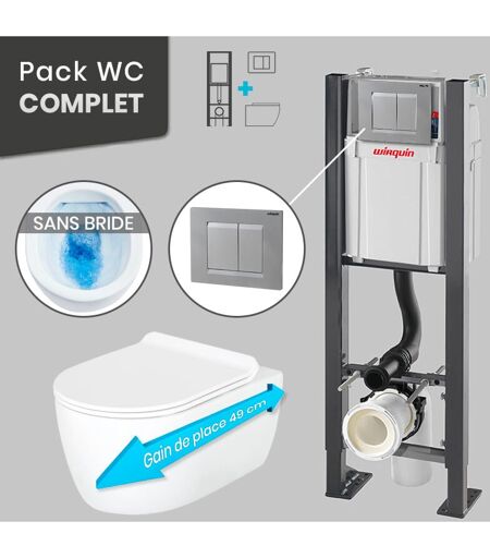 THALASSOR Pack WC Bâti universel Wirquin Pro + Cuvette COMPACT sans bride 49 cm + Plaque chrome mat