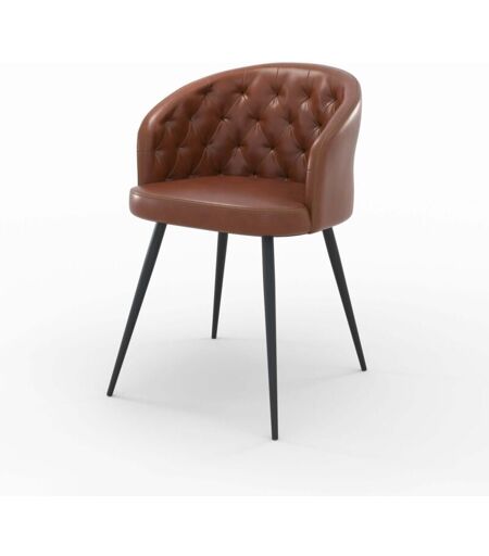 Rendez-vous Déco - Chaise en cuir de buffle marron et pieds en métal noir - anatole