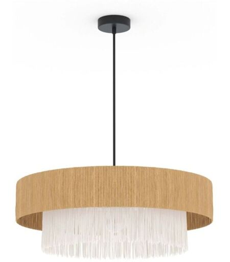 Suspension Solara naturelle 75 cm - La suspension ronde Solara en raphia, allie des matières naturelles pour créer une ambiance douce et apaisante. Sa conception artisanale met en valeur la beauté du raphia, assurant une diffusion de lumière tamisée parfaite pour un intérieur chaleureux. Sa texture légère et élégante, combinée à un tissage minutieux, adoucit la lumière pour offrir un confort visuel optimal. Solara s’intègre facilement dans tout type de décoration, notamment avec des meubles en bois ou en rotin. - Dimensions : Diamètre : 75 cm Hauteur : 23.5 cm Longueur du fil : 1.5 m Matière : Fibre de raphia Infos complémentaires : Ampoule adaptée non incluse : E27 max 40 watt Montage : Aucun montage Poids produit : 1.23kg Entretien : Pour préserver la beauté de votre lampe en raphia, gardez-la à l'abri de l'humidité excessive, nettoyez régulièrement avec un chiffon sec pour enlever la poussière et évitez l'exposition prolongée à la lumière directe du soleil pour prévenir la ...