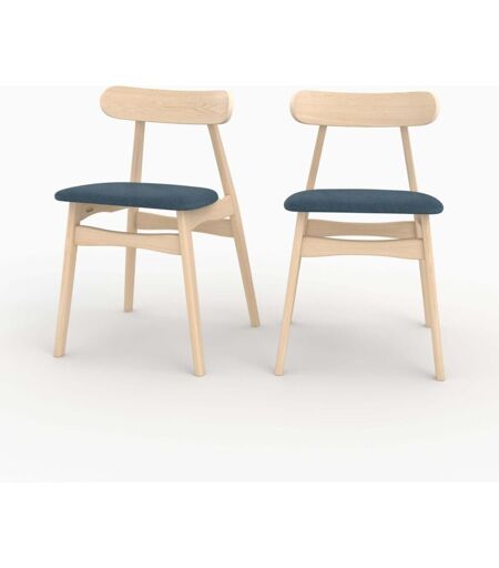 Rendez-vous Déco - Lot de 2 chaises en tissu bleu et bois d'hévéa - lisette